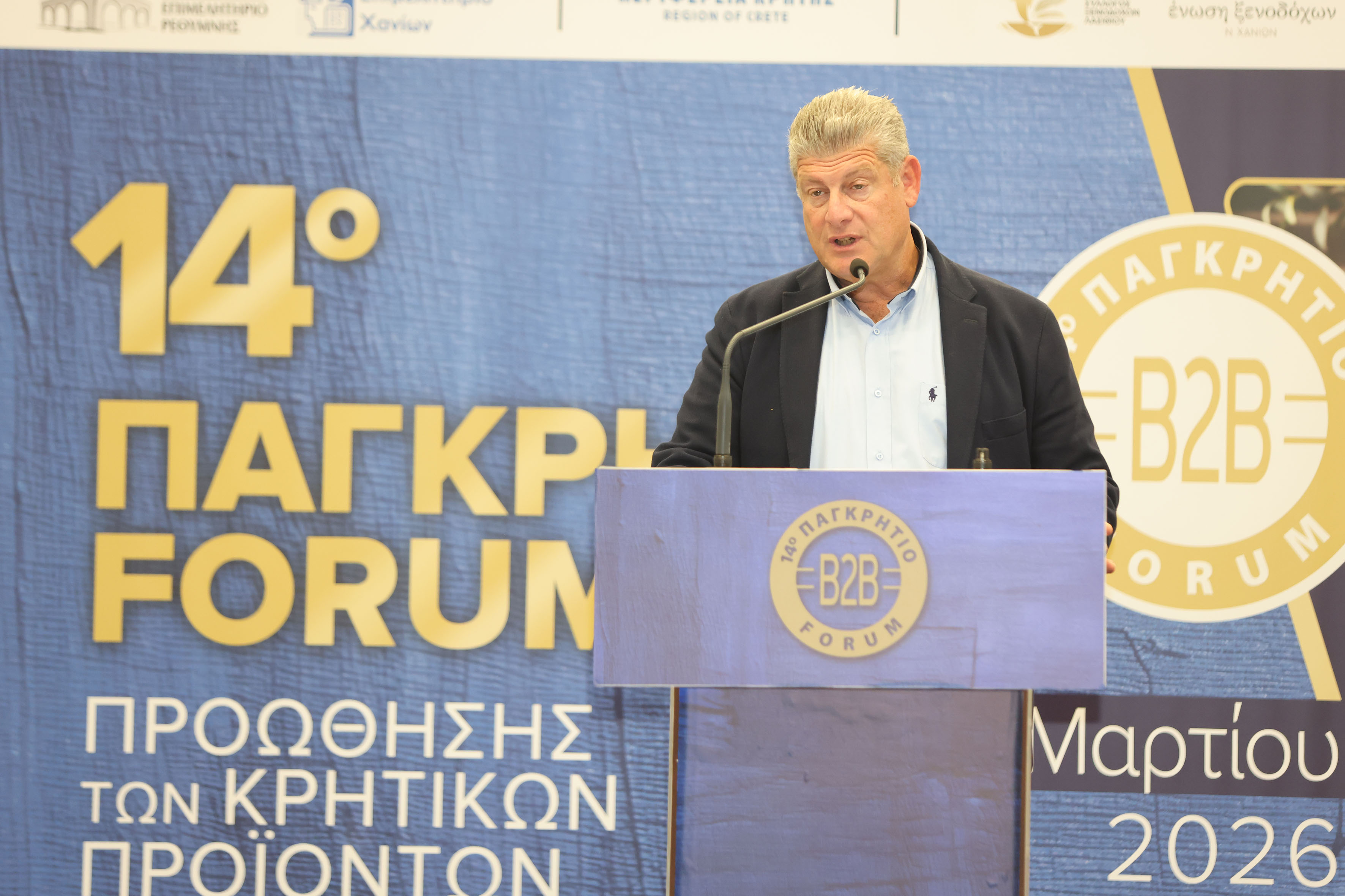 “Το Παγκρήτιο Φόρουμ είναι ένας θεσμός που αποδεικνύει στην πράξη ότι η διασύνδεση του πρωτογενούς τομέα και της αγροδιατροφής με τον τουρισμό και τα δίκτυα διανομής δεν είναι μια θεωρητική ιδέα, αλλά μια στρατηγική με πραγματικά και μετρήσιμα αποτελέσματα για την τοπική οικονομία” τόνισε ο Πρόεδρος του Επιμελητηρίου Ηρακλείου κ. Βαγγέλης Καρκανάκης δίνοντας ιδιαίτερη έμφαση στην ανάγκη για “τη στήριξη όλων σας σε ένα δίκαιο και καθολικό αίτημα των παραγωγικών φορέων και της κοινωνίας της Κρήτης: τη διασφάλιση του δημόσιου και κοινωφελούς χαρακτήρα του χώρου που βρισκόμαστε, του Διεθνούς Εκθεσιακού Κέντρου Κρήτης (ΔΕΚΚ). “ Το ΔΕΚΚ αποτελεί τη μοναδική εκθεσιακή υποδομή αυτού του μεγέθους στην Κρήτη και δημιουργήθηκε μέσα από τη συνεργασία των βασικών παραγωγικών δυνάμεων και φορέων του νησιού, με στόχο την ενίσχυση της τοπικής οικονομίας και την ανάδειξη της Κρήτης σε επιχειρηματικό και αναπτυξιακό σημείο αναφοράς στη Νοτιοανατολική Μεσόγειο.