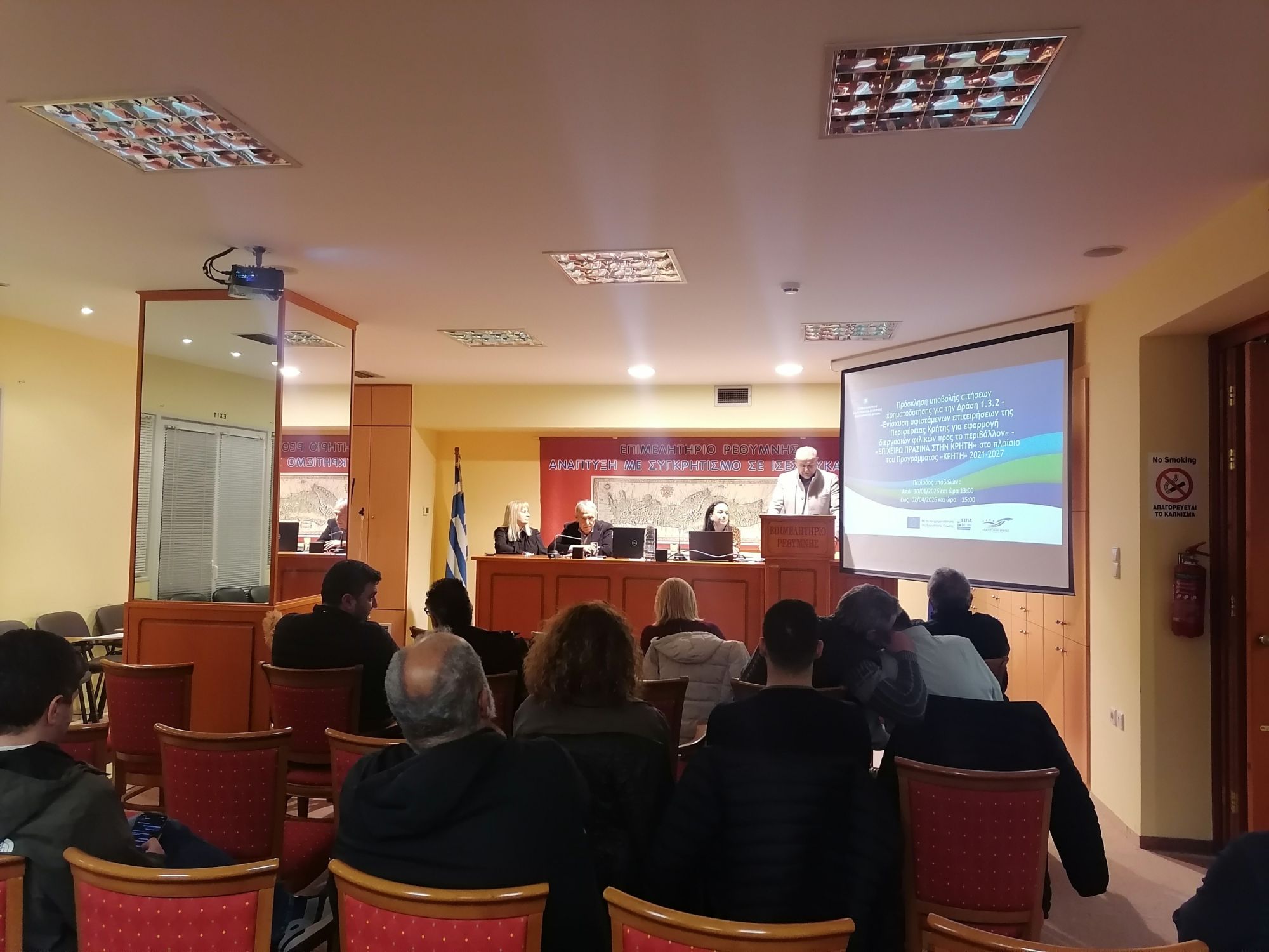 Πραγματοποιήθηκε το βράδυ της Τετάρτης, 18 Φεβρουαρίου με μεγάλη συμμετοχή ενδιαφερομένων η παρουσίαση της Δράσης: Ενίσχυση υφιστάμενων επιχειρήσεων της Περιφέρειας Κρήτης, για εφαρμογή διεργασιών φιλικών προς το περιβάλλον - «ΕΠΙΧΕΙΡΩ ΠΡΑΣΙΝΑ», που συνδιοργανώθηκε από το Επιμελητήριο Ρεθύμνης, την Ειδική Υπηρεσία Διαχείρισης ΠΡΟΓΡΑΜΜΑΤΟΣ «ΚΡΗΤΗ» 2021- 2027, και την Αναπτυξιακή Κρήτης, εταίρο του ΕΦΕΠΑΕ .
